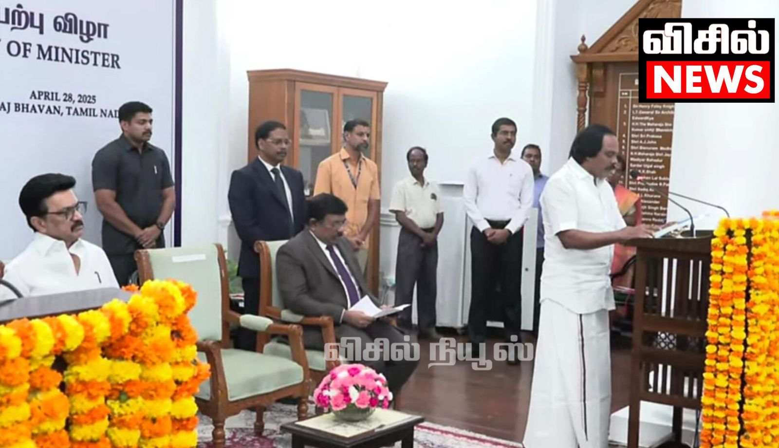 ஆளுநர் மாளிகையில் நடைபெற்ற விழாவில் ஆளுநர் ரவி, பதவிப் பிரமாணம் மற்றும் ரகசிய காப்பு பிரமாணம் செய்து வைத்தார்.